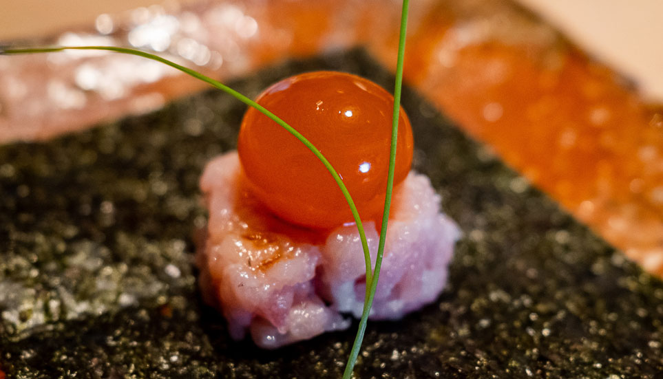 持続可能性の高い社会に向けて取り組むシェフやレストランを評価する『グリーンスター』の称号も獲得しているCronyの18皿からなるコースは、お二人の大好きなクラシックフレンチをベースに、オリジナリティというエッセンスを散りばめられ、まずは一杯の緑茶からスタートし、その緑茶を抽出した後の茶葉を利用して作られるデザートで締め括れられます。